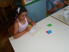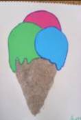 - As crianças fizeram um gelado através de colagens de cartolinas de diversas cores e areia.
