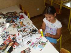 - Através de recortes de revistas as crianças construíram um desenho livre com as imagens que foram tirando das revistas.