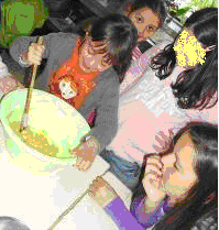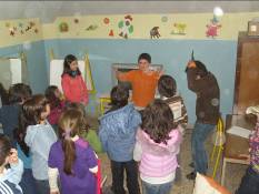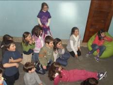 - Advinha o que é!!! – Cada criança tinha que tirar um papel de dentro de um saco e ler o que estava lá escrito, e através da mímica as outras crianças teriam que tentar adivinhar o que estava escrito no papel.