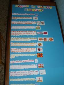 Jogamos ao “Almoço Saudável”: onde construímos um cartaz com as regras do “Almoço Saudável” que foi colocado no nosso refeitório. Assim, as crianças leram com atenção as regras, e durante o almoço no ATL, tiveram que as cumprir. No final da refeição, as crianças receberam um diploma.